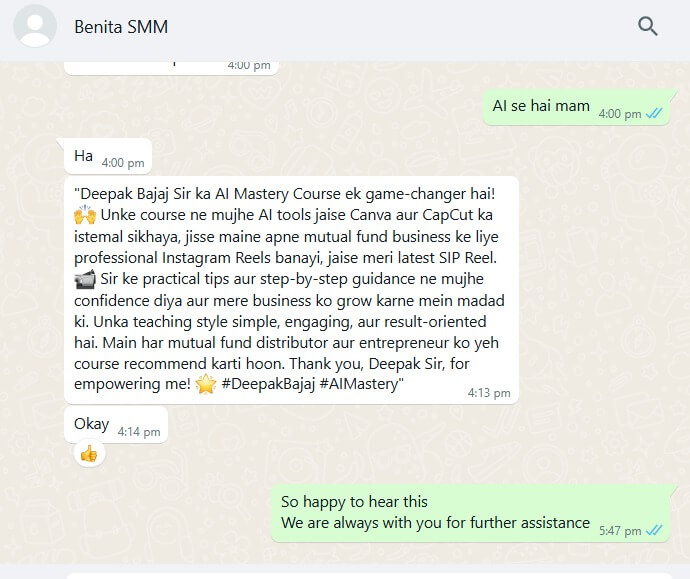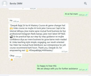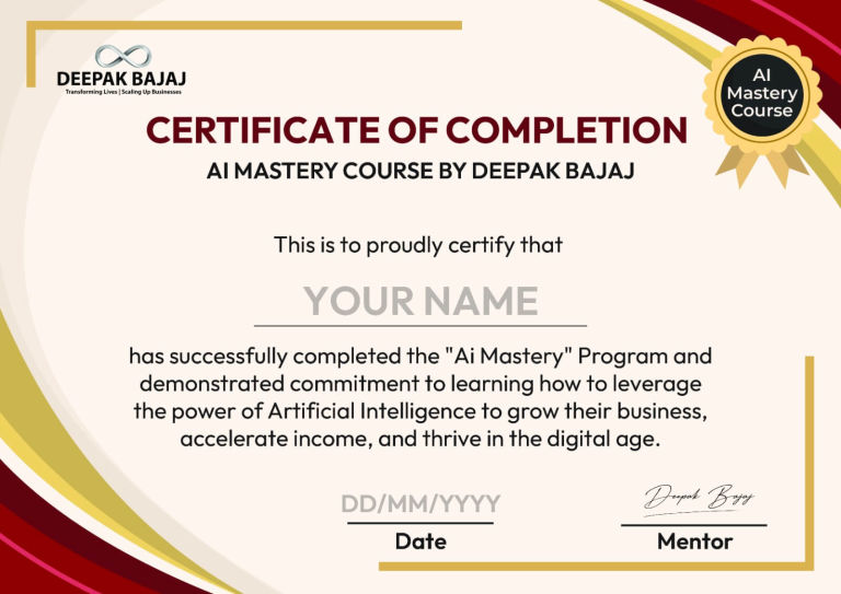 You’ll get 1-month handholding support from AI experts and access to monthly live Q&A sessions with Deepak Bajaj Experts Team. Plus, you’ll be part of our exclusive AI Business Tribe for ongoing support.